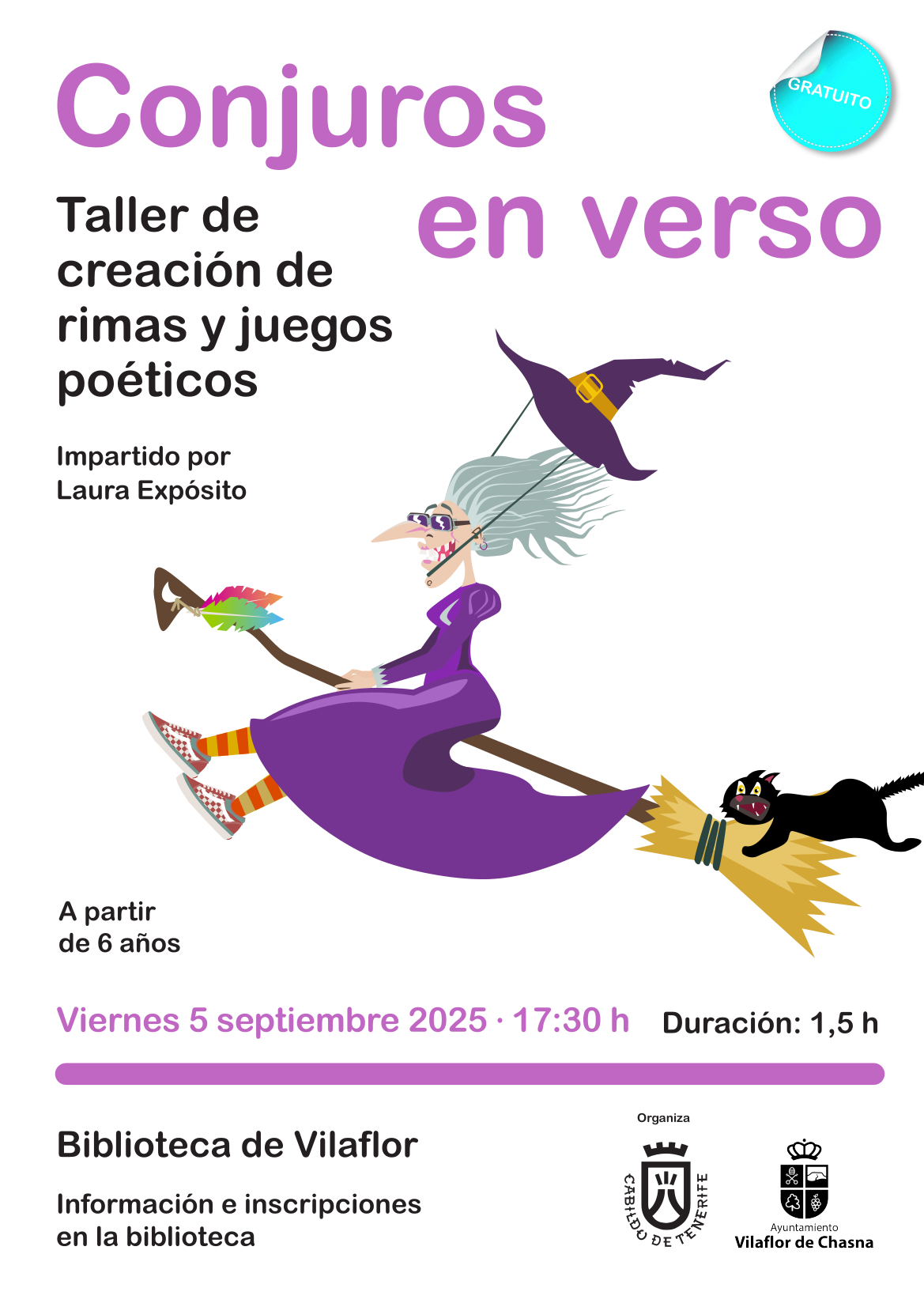 La Concejalía de Cultura del Ayuntamiento de Vilaflor de Chasna, en coordinación con el Cabildo de Tenerife, organiza el taller infantil de creación de rimas y juegos poéticos “𝐂𝐎𝐍𝐉𝐔𝐑𝐎𝐒 𝐄𝐍 𝐕𝐄𝐑𝐒𝐎” para fomentar la lectura y la escritura creativa.