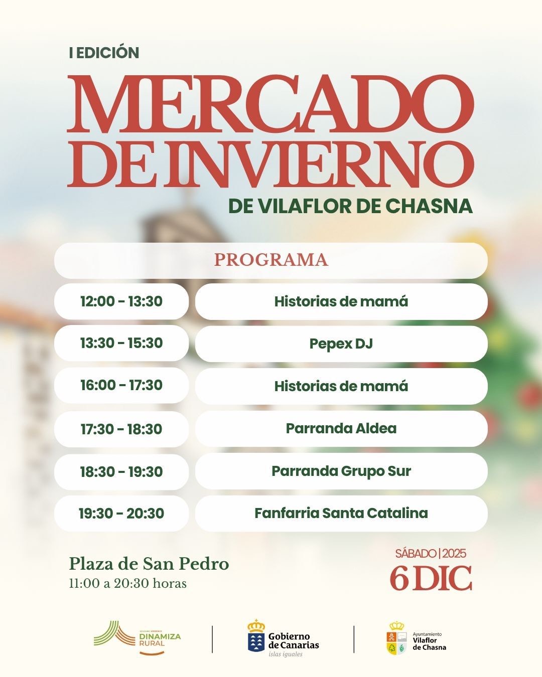 Vilaflor de Chasna el ๐ฌรก๐๐๐๐จ ๐ ๐๐ ๐๐ข๐๐ข๐๐ฆ๐๐ซ๐ de 2025 darรก la bienvenida a la temporada navideรฑa con la celebraciรณn de su primer ๐๐๐๐๐๐๐ ๐๐ ๐๐๐๐๐๐๐๐, que reunirรก marcas locales y de Tenerife, gastronomรญa, actividades familiares y mรบsica en vivo en torno a la emblemรกtica Plaza de San Pedro.
